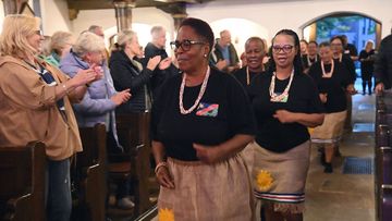 Pfarrerin Dörthe Philipps freute sich, dass der Chor auf seiner aktuellen Deutschlandtournee in Ladbergen Station machte. „Das Ensemble bringt Rhythmus und Farbe in unsere Gemeinde“, stellte sie fest. Die „Brückenbauer“ singen zeitgenössische Gospelsongs, traditionelle Lieder und Eigenkompositionen. Die Texte basieren auf dem Alltag der Bewohner des Landes im Südwesten Afrikas und auf Geschichten aus der Vergangenheit. Sie werden in den Sprachen des Landes gesungen, in Khoe-Khoe, Otjiherero, Setswana oder Afrikaans, aber auch in Englisch, der Amtssprache. Musik ist im Leben der Menschen tief verwurzelt, da sie Freude und Glück schenkt.
