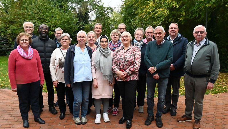 Bei der Begegnung im Gemeindehaus der evangelischen Kirchengemeinde standen Gespräche und der Austausch untereinander im Mittelpunkt. Die Gelegenheit wurde ausgiebig genutzt, auch von Vertretern aus Politik und Gesellschaft. Die Gäste erfuhren, welch große Leistungen bei der Integration Geflüchteter in der Gemeinde erzielt werden. Eine große Tafel mit Fotos von gemeinsamen Unternehmungen ergänzte die Erzählungen. Darauf waren viele lachende Gesichter bei Feiern aber auch angestrengtes Lernen zu sehen. Deutschunterricht ist das Kernthema für das Ankommen in der neuen Heimat. Dies wurde sowohl von den Geflüchteten selbst als auch von den Vertretern der Kirchen und der Kommune in den Vordergrund gerückt.