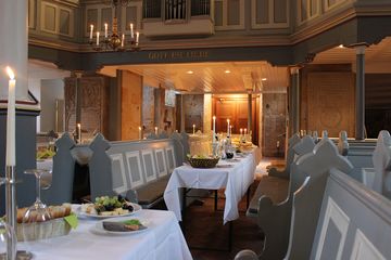 An diesem Abend verwandelt sich der Kirchenraum. Die Bänke treten in den Hintergrund, stattdessen stehen lange, festlich gedeckte Tische im Mittelpunkt. Menschen nehmen gemeinsam Platz, essen miteinander, hören Musik, beten und feiern Gottesdienst.