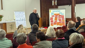 Ein zentrales Element der Gemeindeversammlung war die aktive Mitwirkung der Anwesenden. In Stimmungsabfragen, Kleingruppen und offenen Gesprächsrunden nutzten viele Gemeindeglieder die Gelegenheit, eigene Vorschläge und Ideen einzubringen. Diskutiert wurden unter anderem zukünftige Nutzungsmöglichkeiten der Friedenskirche, bauliche Prioritäten sowie Formen der Unterstützung – von ehrenamtlichem Engagement über Projektgruppen bis hin zu Spendenaktionen und Förderideen. Die Vielzahl an Wortmeldungen zeigte eindrücklich, wie stark die Verbundenheit mit dem Kirchort ist.