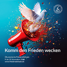 Die diesjährige Friedensdekade vom 9. – 19. November steht unter dem Motto „Komm den Frieden wecken“. Wie schon in der Vergangenheit klingt es wie eine Zeitansage: Ein unüberhörbarer Weckruf gegen Gleichgültigkeit, Gewöhnung und Resignation. Das originelle Plakatmotiv des Künstlers Sebastian Schmidt zeigt ein rotes Megafon, aus dem eine weiße Taube fliegt. „Die Taube“ erklärt Schmidt zum diesjährigen Motto, „ist das universelle Friedenssymbol, aber das Megafon steht für die Dringlichkeit: Frieden muss laut eingefordert werden. Viele Menschen sind müde geworden angesichts der Kriege – da wollte ich ein Motiv schaffen, das aufrüttelt.“ Eine Absicht, die durchaus gelingen kann mit einer breiten Beteiligung, damit in der gegenwärtigen Legitimation von militärischer Gewalt und gigantischer Aufrüstung, die Stimme des Friedens laut wird.