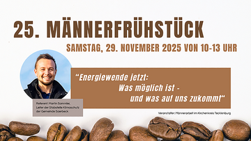 Nach einer Begrüßung und einem geistlichen Impuls genießen wir gemeinsam das Frühstück, bevor Referent Martin Sammler (Leiter der Stabstelle Klimaschutz der Gemeinde Saerbeck) seinen Vortrag hält und wir anschließend in Gespräch und Diskussion mit ihm eintreten.